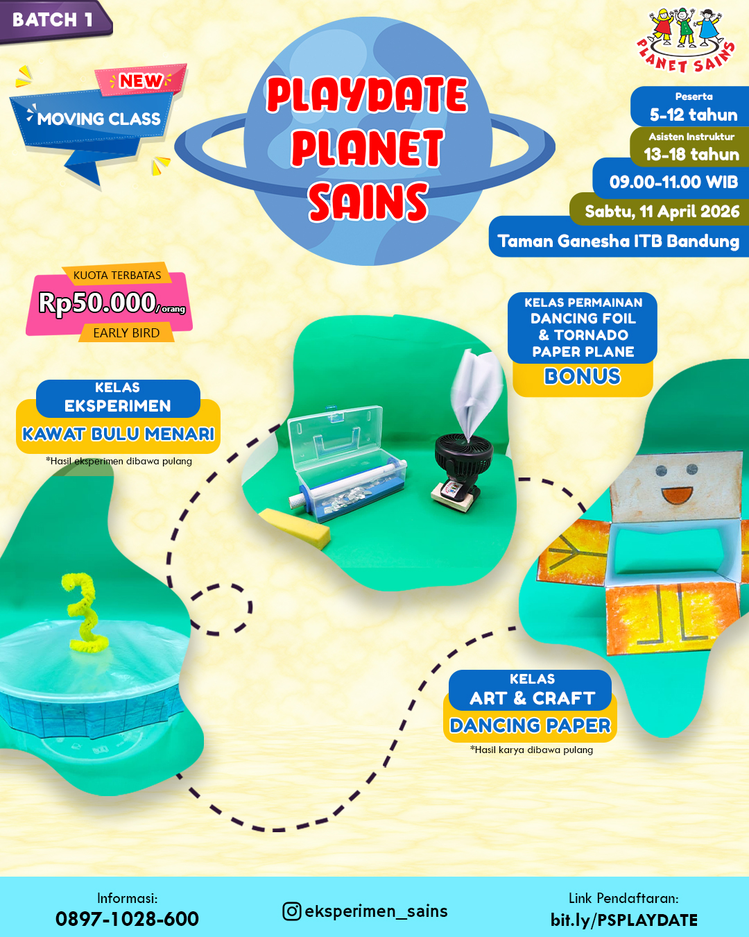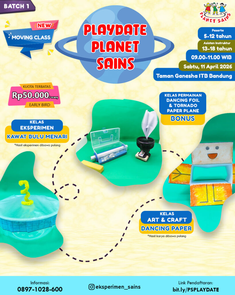 Setujukah Ayah Bunda? Mengetahui minat dan bakat anak akan membuka pintu kesuksesan baginya di kemudian hari. Anak-anak akan lebih fokus untuk menjalani kegiatan sesuai yang diinginkannya dengan bahagia. Kelas Sains Sore dapat menjadi sarana belajar bagi si kecil untuk mendapatkan ilmu dan keterampilan yang tidak diperolehnya di sekolah atau di rumah.
