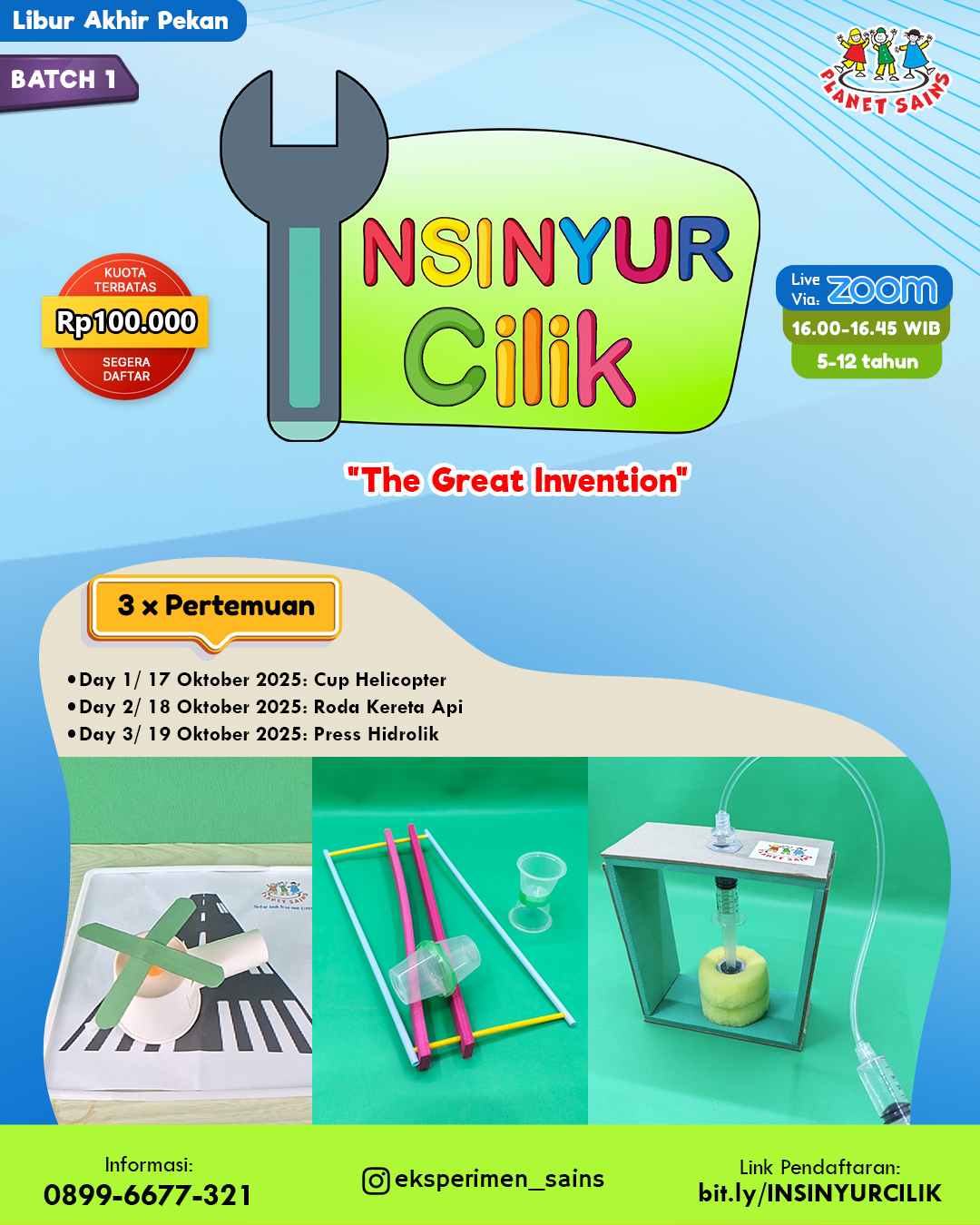 Saatnya anak yang penasaran, suka merakit sesuatu, dan ingin tahu cara kerja sesuatu bergabung menyelesaikan 3 hari tantangan proyek hebat.